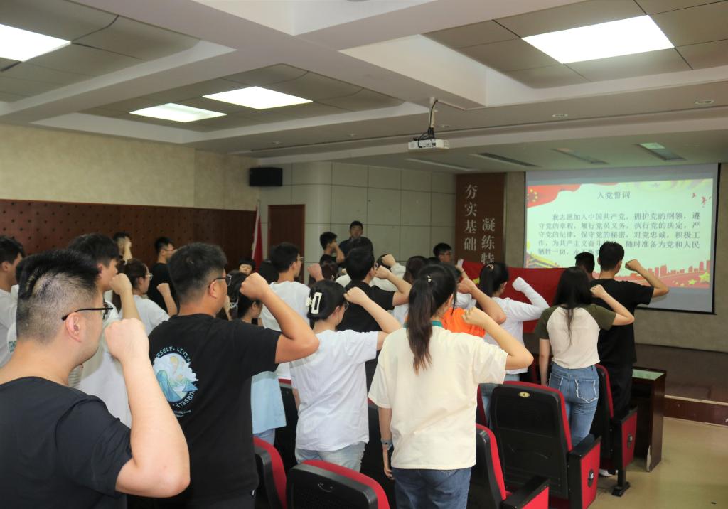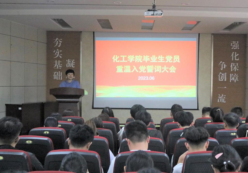 在J2-104报告厅召开2023届毕业生党员重温入党誓词大会。会议由徐华坤老师主持,学院党委副书记兼副院长田静、全体辅导员老师及2023届毕业生党员参加。
