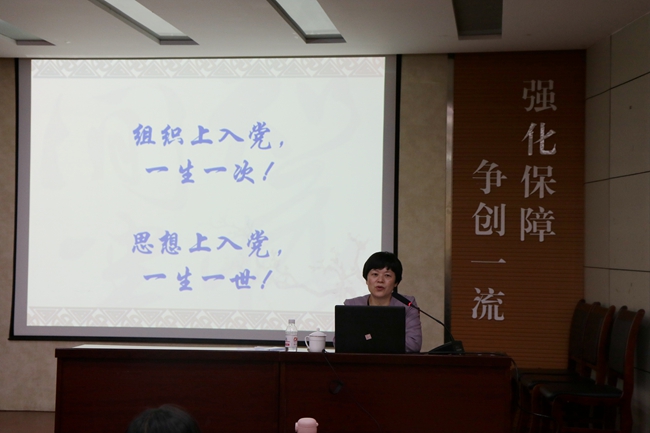 随后,田书记为学员们讲授第一课,主题为如何加入党组织。她从申请入党的条件、入党积极分子的八项义务和八项权利以及发展党员的工作流程展开讲解,将各阶段对同学们的要求、发展过程中的注意事项等做了具体讲解分析。田书记对大家寄予殷切期望,希望大家端正入党动机,加强思想和世界观的改造,在经过学习和培训后,在思想上更成熟,在政治上更坚定,在行动上更自觉,以个人的实践锻炼,增强党性修养,坚守入党初心,积极行动作为,早日成长为一名合格的党员。