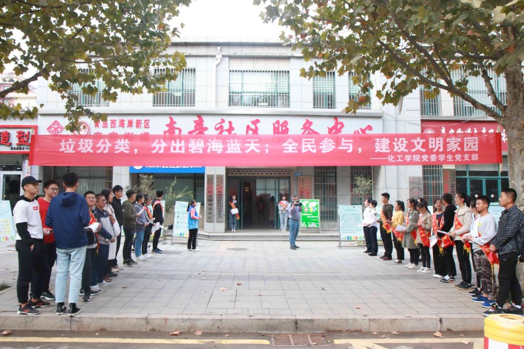 党委组织环境科学与工程系教工党支部、学生党支部,发挥师生党员作用,与学校所处的青岛市西海岸新区西南辛社区合作开展推动垃圾分类志愿宣传服务。