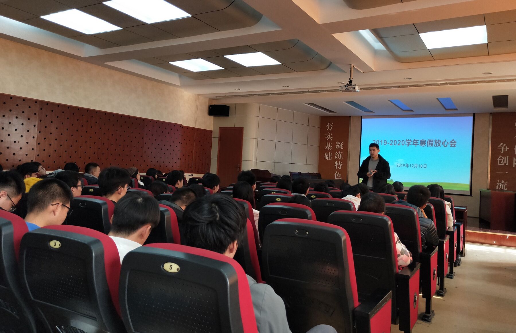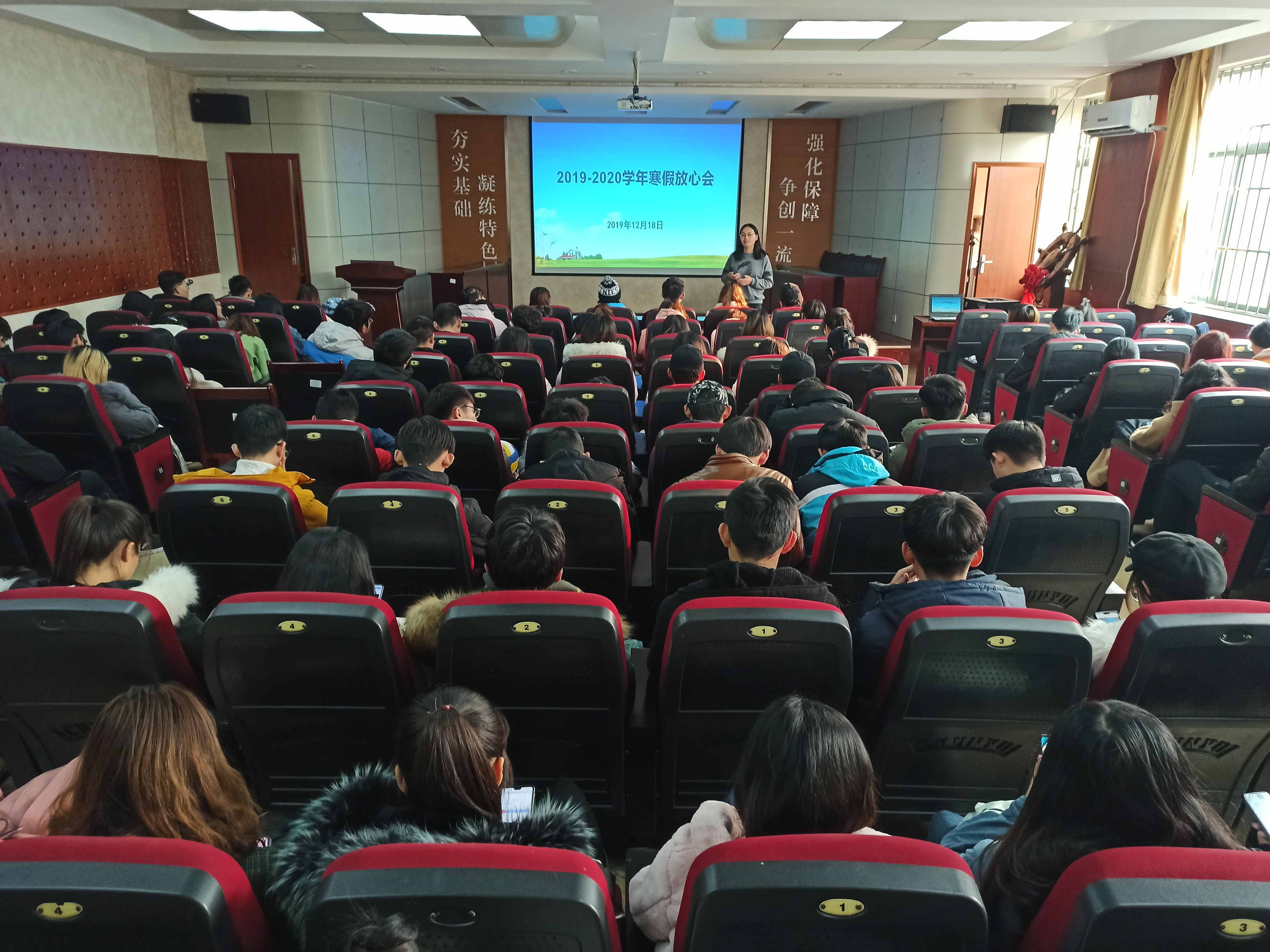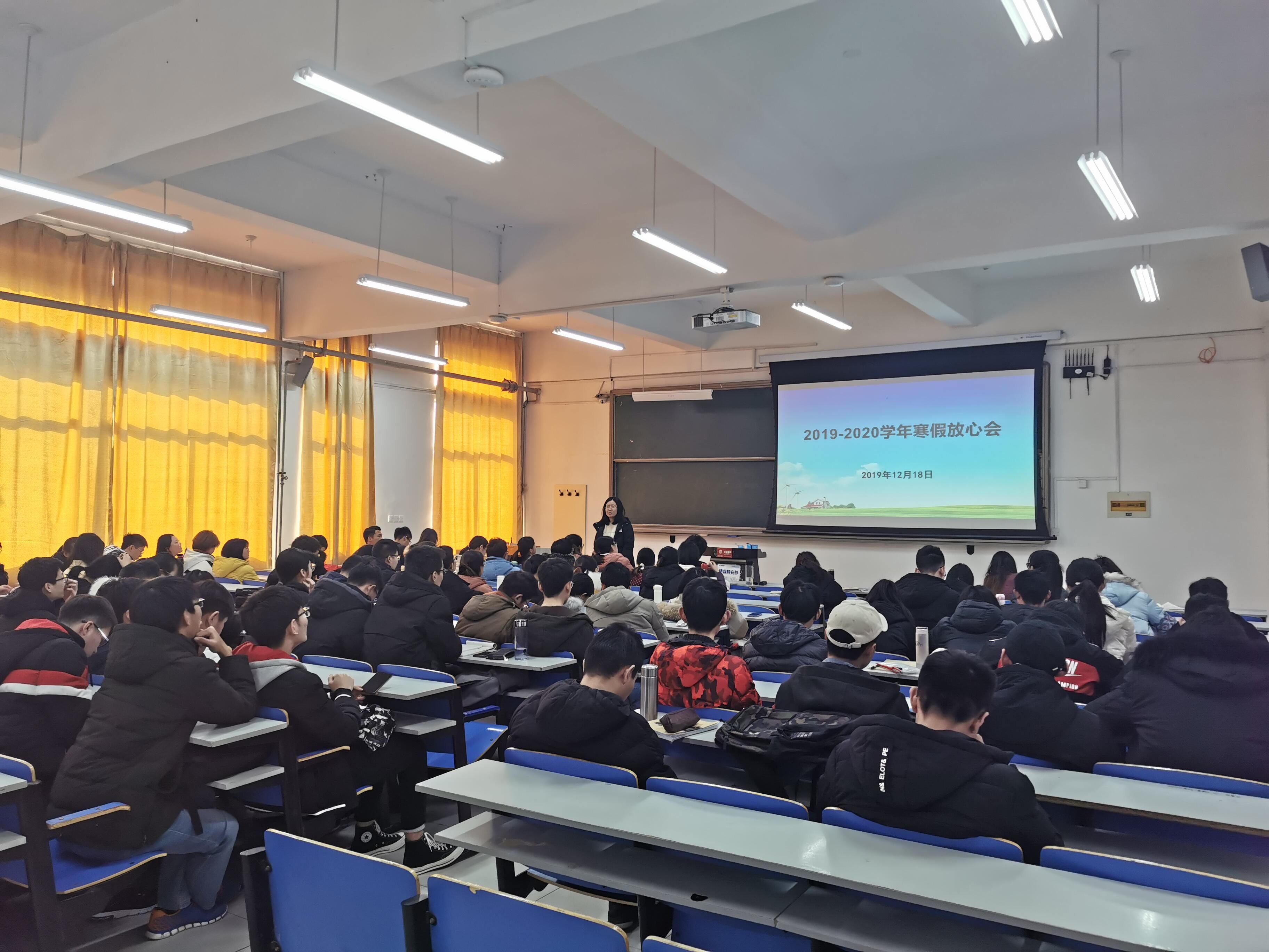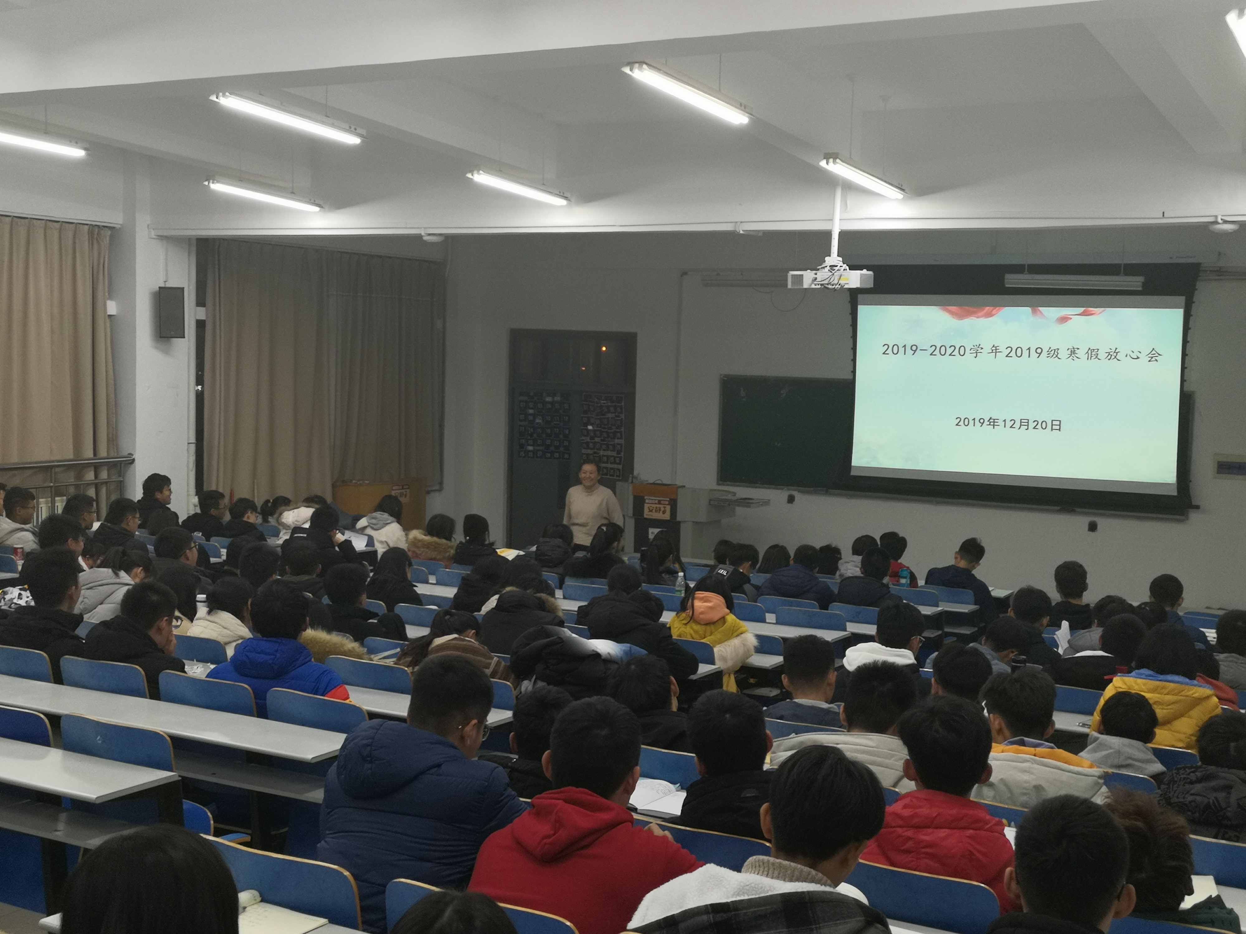 举办2019-2020学年寒假放心会,全院学生到场参加,各年级辅导员分别主持会议。会上,辅导员们着重强调了人身安全与财产安全问题,结合新闻中的典型案例和身边发生的实例,从水域安全、交通安全、食品安全、人身财产安全等方面向大家普及了寒假安全知识,提醒大家在离校返校途中、寒假在家期间要时刻注意安全问题。随后,老师们说到,要合理安排好寒假时间,制定学习计划,充实自己的假期生活,并提醒同学们留意购票时间,提前购买返校车票。会后,同学们纷纷表示,老师们的寒假安全知识普及和暖心嘱托,让自己感到十分温暖且受益颇多,在即将到来的寒假中,将会进一步强化安全防范意识,科学规划假期生活,过一个安全充实的寒假。(通讯员:徐华坤)