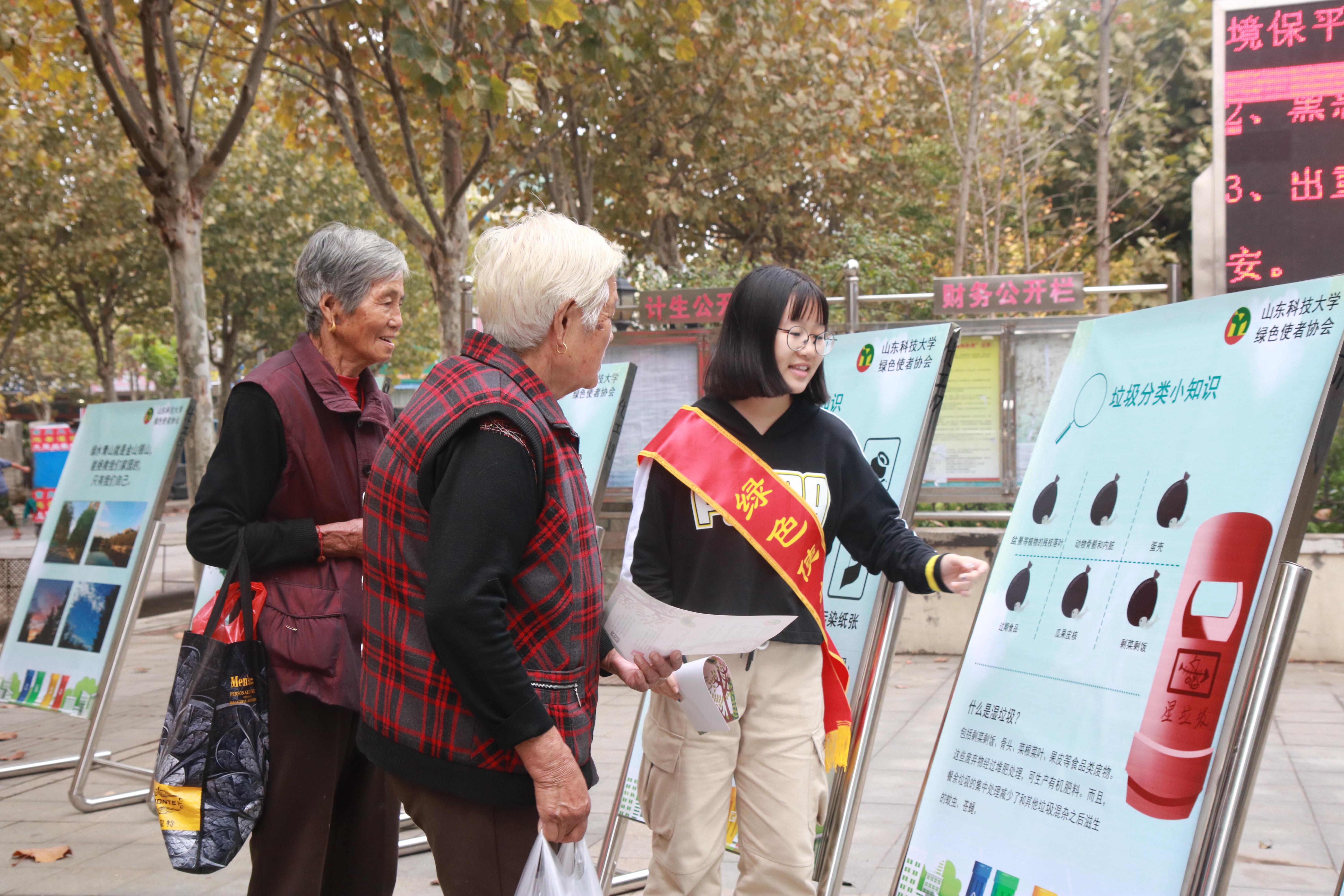 在活动现场,学生党员志愿者结合宣传展板,面对附近居民,详细介绍了垃圾分类的重要意义和有关垃圾分类知识,并结合生动详实的案例,使社区居民认识到垃圾混合投放的危害性和垃圾分类投放的必要性。绿色使者协会会员们还挨门挨户将印制好的宣传彩页发放给居民群众,进一步宣传垃圾分类的相关知识。