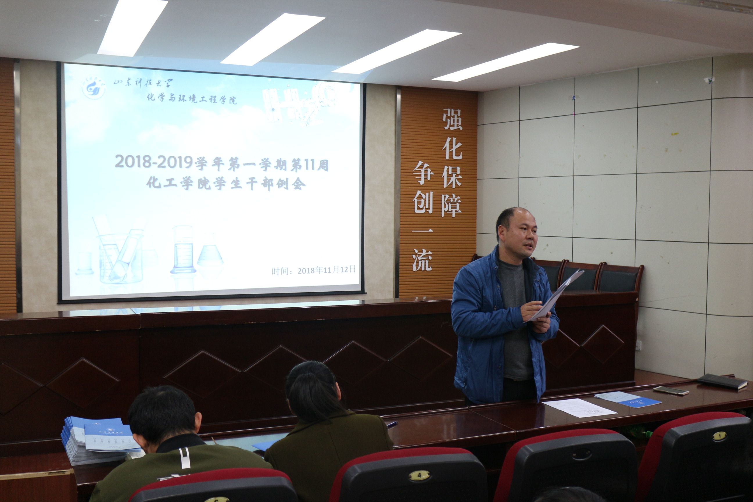团委召开学生干部工作例会,集中开展科大精神传统教风学风学习活动。学院专兼职辅导员,全体学生干部参加会议。团委书记范俊峰主持会议。