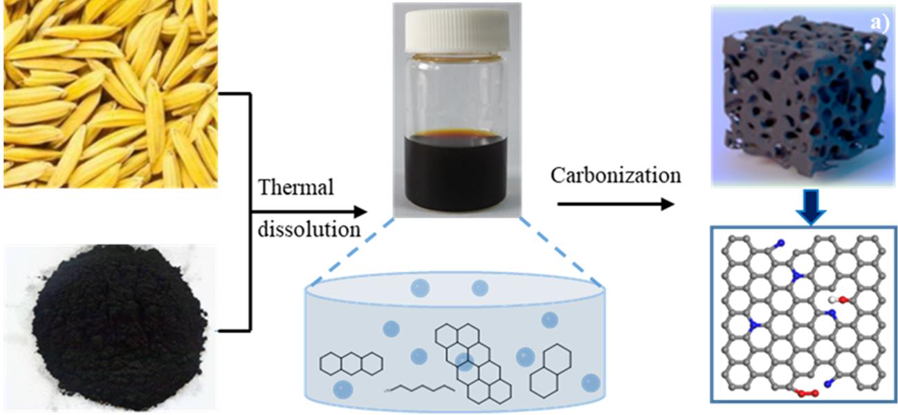 以稻壳和褐煤的共热溶物作为碳源、纳米ZnO和KON分别为模板剂和活化剂,制备多孔炭材料。碳源的分子组成是决定炭基材料性能的关键因素之一;采用气质联用仪和高分辨率质谱对共热溶物碳源进行分子层面的研究。结果显示碳源中的含氮化合物(特别是芳环内含氮化合物)改善了多孔炭材料的导电性,含氧化合物有助于提高炭材料的赝电容和润湿性,具有不饱和结构的芳香族化合物有利于形成石墨化结构,促进电子的转移与传输。(Fuel, 2022, 311: 122552)
