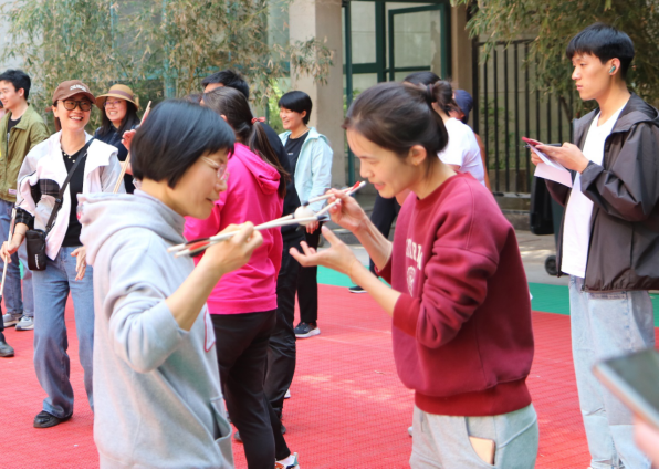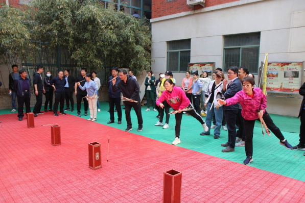 本次趣味运动会共设置投壶、运输小队2个项目,学院教职工们自由组合,5人一队,以团队的形式进行比拼。投壶现场,一支支道具箭从手中抛出,在空中留下一道优美的弧线,大家都期待着箭入方壶。运输小队项目是用箭夹住乒乓球进行接力赛,考验的不仅是平衡能力,更是团队合作。这两个项目充满了趣味,教工们兴致勃勃,竞相踊跃参加,一展身手。运动会不但是智慧和体力的角逐,更是团结和协作的比拼。参赛教职工们兴致盎然、斗志昂扬,现场气氛热烈,掌声笑声不断,其乐融融。