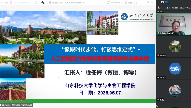 国家一流课程-化工原理负责人-徐冬梅教授作为主讲嘉宾应邀参加了本次化生学院“教学工夫茶”系列讲座,做了题为“人工智能助力专业教学改革以及教学成果申报”的特邀报告。化生学院党委书记丛春秋、院长李良智、副院长张钱丽和教学骨干教师参加讲座,会议由学院教师发展中心主任陈佳佳主持。