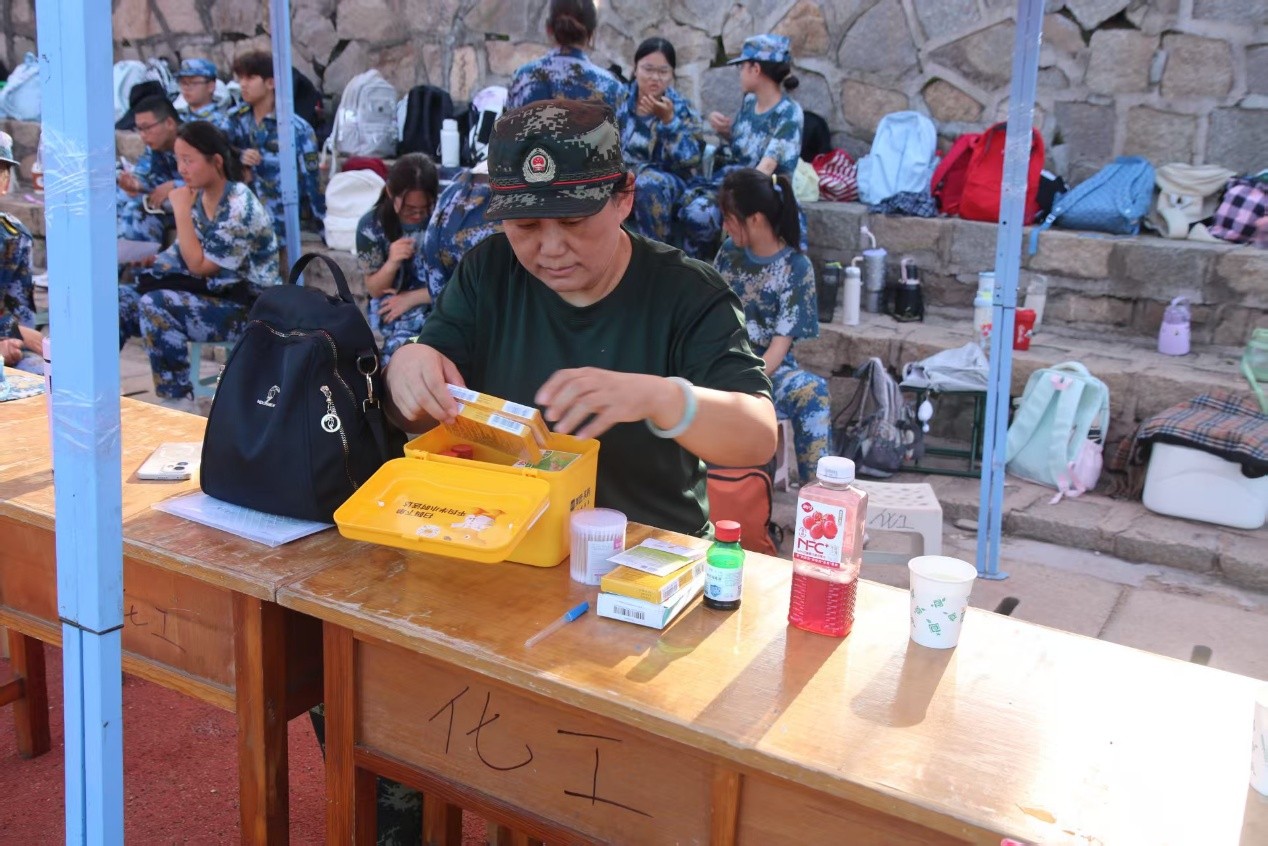 在医疗保障方面,学院配备专业医疗箱和充足物资,医疗保障点整齐摆放应急药品、防暑物资及饮用水,医药箱内物品分类清晰、齐全完备,确保第一时间响应各类医疗需求。
