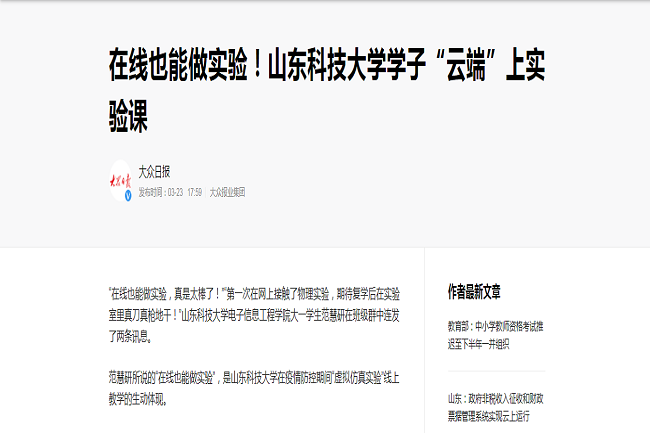 实验课程线上线下融合互补教学模式,增加了实验课堂的趣味性,加深了学生对实验项目的理解和掌握,提高了学生自主学习和设计实验的能力,解决了目前实验室设备缺少、空间不足、无法进入实验室等客观条件的限制。经过实际运行,实验教学效果良好,受到了学生好评,新的实验教学模式也被山东教育卫视、大众日报等多家媒体宣传报道。