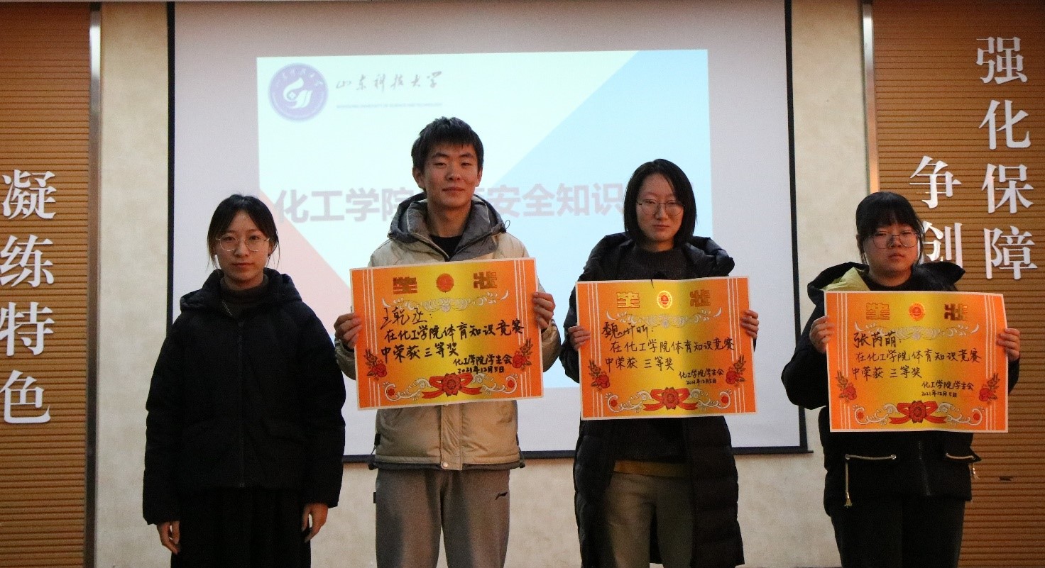 经过一番紧张激烈的竞争,矿加三班张绪胜夺得本次体育知识竞赛一等奖,矿加二班王浩林、工艺二班熊娅茹获得二等奖,工艺二班王乾丞、矿加二班魏开昕、生工一班张芮萌获得三等奖。