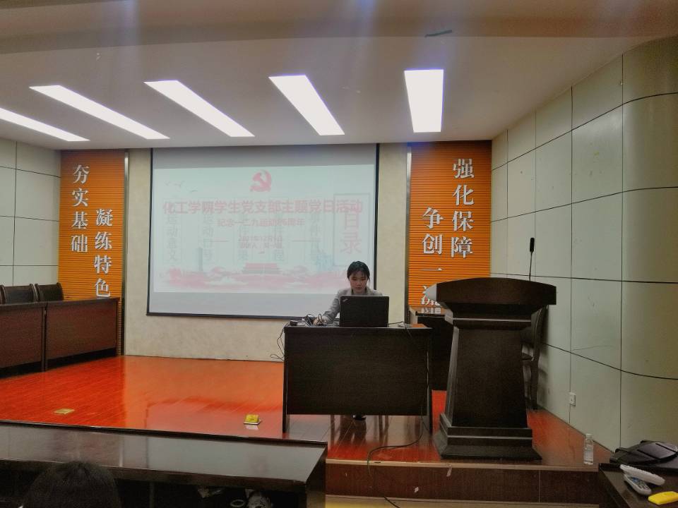 全体学生党员参加。在首先进行的主题党日活动环节,研究生党支部党员周一帆同志带领大家一起回顾了“一二九运动”的历史,并重温了这次运动的伟大意义。接着,支部党员代表座谈,抒发个人对于这段历史的感触。其中,支部委员李春晓同学说道:李大钊曾在《青春》一文中写道:“冲决历史之桎梏,涤荡历史之积秽,新造民族之生命,挽回民族之危机。”今天的我们虽然无需面对国土的沦丧,无需承受战火硝烟,但我们面前的任务同样艰巨。我们是祖国的未来,祖国的希望,我们要发扬不屈不挠,顽强拼搏的“龙性”。放眼新世纪,建设祖国,振兴中华,我们是不会退缩的。”