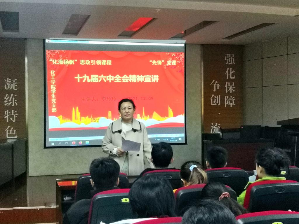 主题党日活动进行了四十分钟,在热烈的气氛中结束后,本科第一支部书记李玲玲老师和本科第二支部书记徐华坤老师轮流上台,向全体同志做党的十九届六中全会精神宣讲。最后,院团委书记、研究生支部书记易凡老师做活动总结,她号召广大同志铭记历史、不忘初心,在2021年将要结束的12月,总结过往,计划未来,以更加积极的态度学习十九届六中全会的精神,带着更加饱满的热情、更加充足的干劲迎接2022年和党的二十大,与全国人民一道,在中华民族复兴的各项事业中贡献全部力量,书写新的华章。
