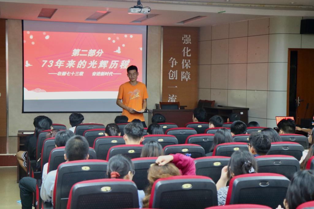 田径队在J2报告厅开展团日活动,活动的主题是“欢度国庆节,喜迎二十大”。活动由田径队团支部书记、总教练赵良朔主持,全体队员参加。首先,赵良朔带领大家重温了中国革命史,向大家讲述了国庆节的由来,强调了伟大祖国走到今天的不易,引发队员们的强烈共鸣。随后,团支部副书记耿继栋把党史上重要会议做了简要串讲,重点学习了党的十八大以来的重要会议精神。听完讲述,同学们开展了热烈的讨论,大家纷纷表示,为了新中国的建立,无数革命先烈抛头颅洒热血,为了新中国的强大,一代代青年前赴后继艰苦奋斗,在祖国73周年华诞之际,党的二十大也将召开,作为新时代青年,我们有决心有责任有能力有毅力接过前辈们手中的五星红旗,为实现中华民族的伟大复兴贡献力量。讨论结束后,团支书、总教练赵良朔号召队员们要继续注重体育锻炼,强身健体,要不断努力学习各类知识,增长才干,为将来报效祖国走好脚下的路,以实际行动迎接党的二十大召开。