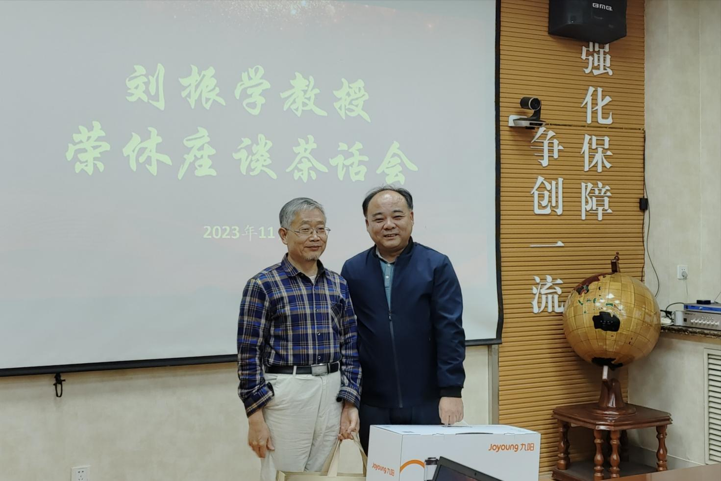 的一路风雨历程,回忆了与大家一起共事时的美好时光,并表示:人退心不退,如若学院需要,有召必回。与会教师纷纷表达了对刘振学教授的深切敬意并送上美好祝福。