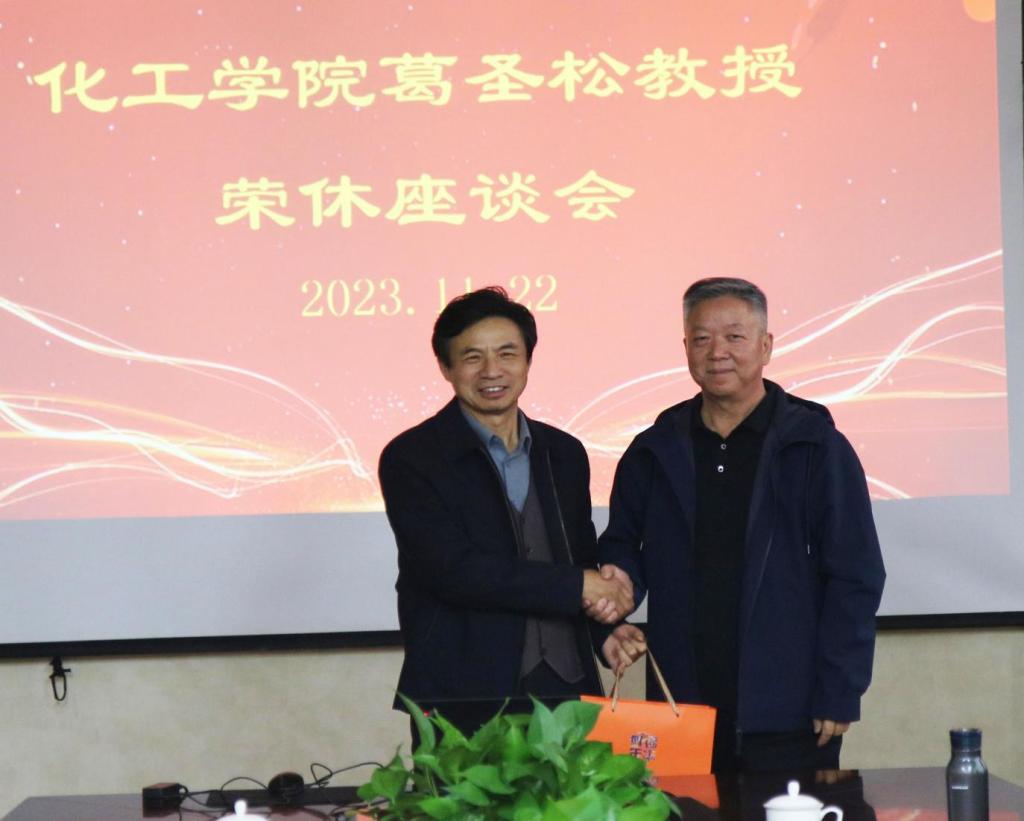 举办葛圣松教授荣休座谈会。学院党委书记窦存增,院长吕宪俊,党委副书记兼副院长、院工会主席田静及应化系教师代表参加座谈会,会议由田静主持。