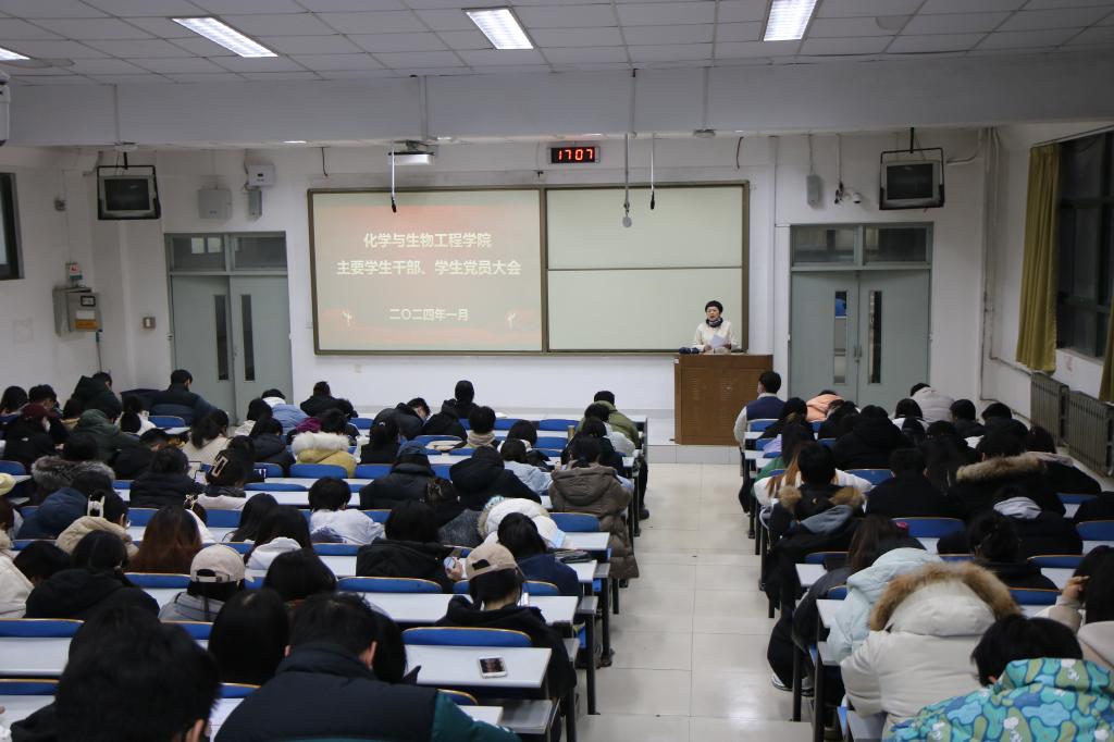 田书记首先对学院2023年学生工作取得的成绩进行了总结。她指出,一年来学院学生工作成效良好,学生思想政治教育工作不断强化,考研升学率再创历史新高,学生文体比赛成绩突出,科技创新稳步推进,毕业生就业工作有序开展;同时也指出了工作中存在的问题,希望学生干部、学生党员能够总结经验,再接再厉,不断提高自身的责任意识和工作水平,推动学院学生工作更上一层楼。随后,她传达了学校关于进一步加强防范电信网络诈骗工作、进一步做好交通安全工作的通知要求,并对寒假前后学生工作进行了具体安排与部署。