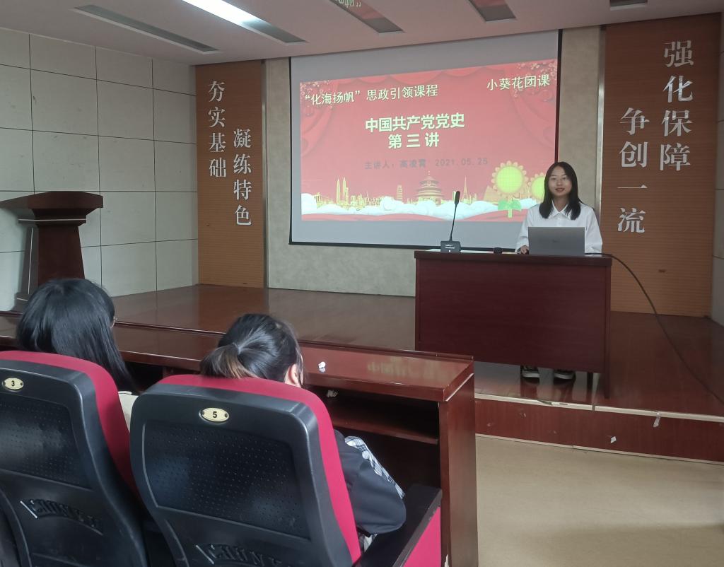 “小葵花”系列团课第八讲于J2-104开讲。课程由矿物加工工程2018-1班团支书王静维和矿物加工工程2020-1班高凌霄担任主讲,学院团委书记易凡主持,各班级团支部书记到场聆听。两位主讲分别围绕1922、1923年的党史展开了讲解。其中,高凌霄讲述了1922年的党史,她介绍道,在创建初期,党的建设的迫切任务是建立健全党的组织机构,发展壮大党的队伍。短短一年的时间,年轻的中国共产党茁壮成长,发展和扩大了许多地方组织,给中国革命带来新的希望;王静维讲述的是1923年的党史,她讲道,党的二大是中国近代历史上第一次明确提出彻底反帝反封建的民主革命纲领,“打倒列强,除军阀”成为各族人民的共同呼声。中国共产党以中国工人阶级先锋队和中国人民根本利益代表者的面貌,组织和掀起工人运动的高潮,发动和领导农民运动、青年运动、妇女运动,很快开创出中国革命的新局面。课程结束后,团委书记易凡对两位团支书的课程进行了逐一点评,并强调,作为团支书,要坚定共产主义信念,发扬红色传统,延续共产党人的精神血脉,在广大团员中起到先锋模范的榜样作用,在各项工作中争当表率。
