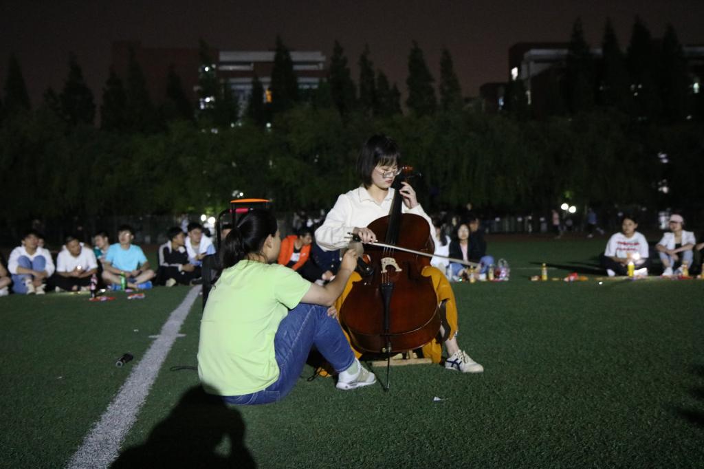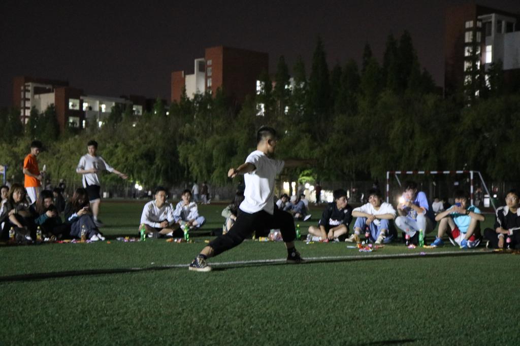 留学生表演结束后,主持人宣布团日活动进入团支部成员表演环节,团支部成员孙铭泽大提琴独奏《lemon》《我和我的祖国》,悠扬的琴声随着夜风,流进了每一个人的心里;王阳为大家带来的太极拳、白雪晴等四人展示的少林长拳 ,让同学们不由得感叹中华武术的博大精妙;随后,田径队团支部全体成员合唱《朋友》和《1024草榴