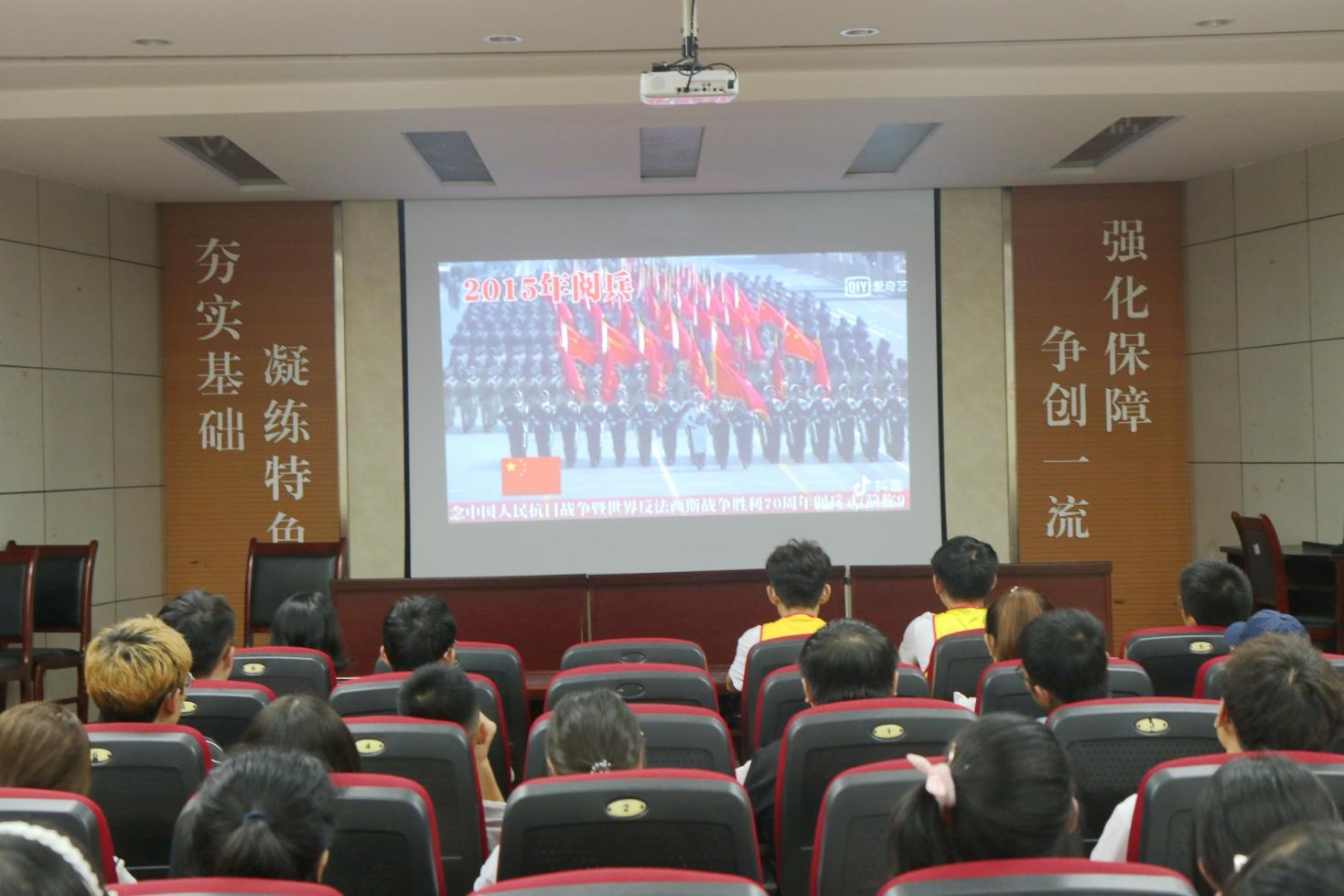 易老师指出,一周后的9月3日我们将迎来抗日战争胜利纪念日,队员们当不忘历史,警钟长鸣,奋斗自强,立志复兴。随后,大家共同观看了电视剧《觉醒年代》片段、刘长春一人参加东京奥运会画面以及2015年9月3日抗战胜利70周年大阅兵片段,同学们神情专注,现场气氛热烈。