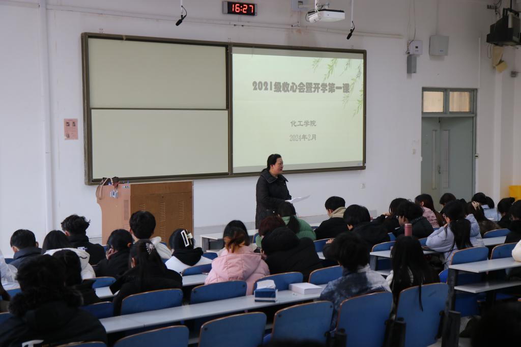 召开2021级收心会暨开学第一课。会议由2021级辅导员李玲玲主持,2021级全体学生参加。