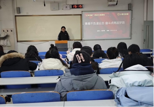 小葵花团课2025年第四讲在J1-108开讲。本期团课的主题是“青春不负凌云志,奋斗点亮追梦路”,由矿物加工工程2021-1班优秀团员代表杨子昂担任主讲,各团支部书记和部分团员代表到场聆听。杨子昂先简单介绍了个人履历,她以第一作者在《中国科技信息》发表的综述论文有效解决实际难题,并在全国青年爱国主义志愿宣传等实践活动里表现亮眼,斩获“国家奖学金”等奖项。随后,团课进入互动环节。对于团支书们提出的各种自身发展问题,杨子昂一一解答并给出中肯的建议。最后,杨子昂深情总结,她说:“还有三个月就要毕业离校了,回顾嵙大岁月,只有感激和不舍,号召与会青年珍惜科大时光,不负青春,努力奋斗”。她的话语激发了与会人员的强烈共鸣,团课在热烈的掌声中结束。