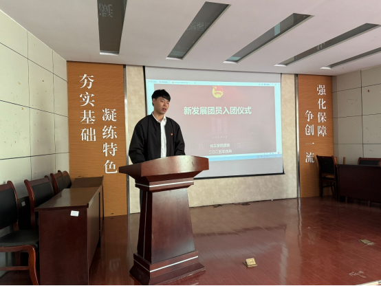 在J2-104报告厅举行2025年新发展团员入团仪式。学院团委书记兼学工办主任易凡、2024级辅导员满灏、优选计划辅导员李子龙、团员代表以及新发展团员参与了此次活动。仪式由2023级辅导员孙梦柯主持。