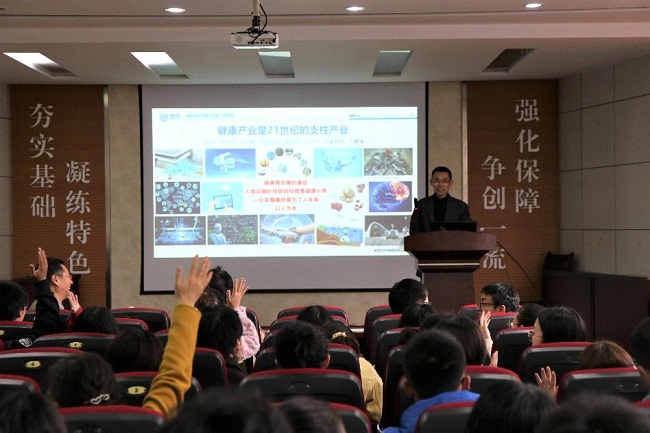 报告从人类必需的生命元素碘开始,延伸到中国提取利用碘元素的发展历程;从海藻的种类介绍深入到各种海藻的功用,拓展至整个海藻产业开发,探讨了海洋生物产业发展的机遇。李可昌教授阐释了明月海藻集团一直秉承着的“利用海洋资源,造福人类健康”的发展理念,鼓励同学们发掘和把握创业机遇,勇于创业,敢于创新,开拓视野,发展成长为复合型创新人才。
