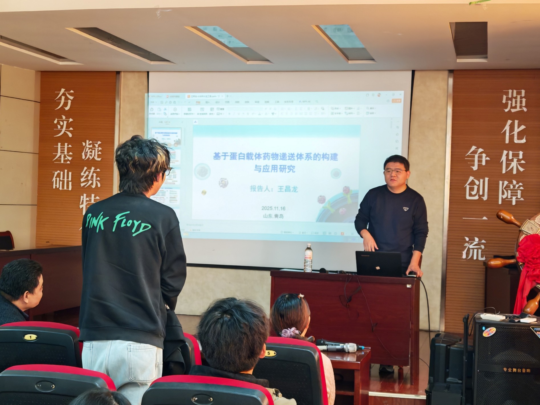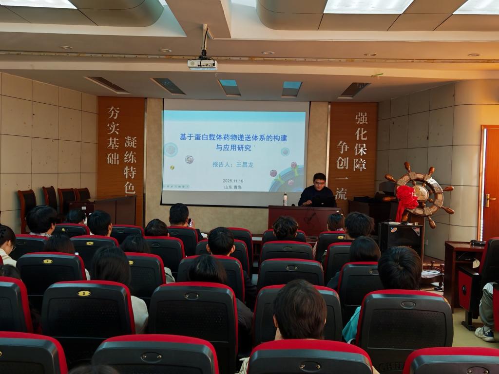 生物工程专业2011级优秀校友、山东第一医科大学王昌龙教授回访母校,并在J2-104报告厅为师生带来题为《基于蛋白载体的药物递送体系的构建与应用研究》的学术报告。报告会由生物工程系副主任赵辉教授主持。